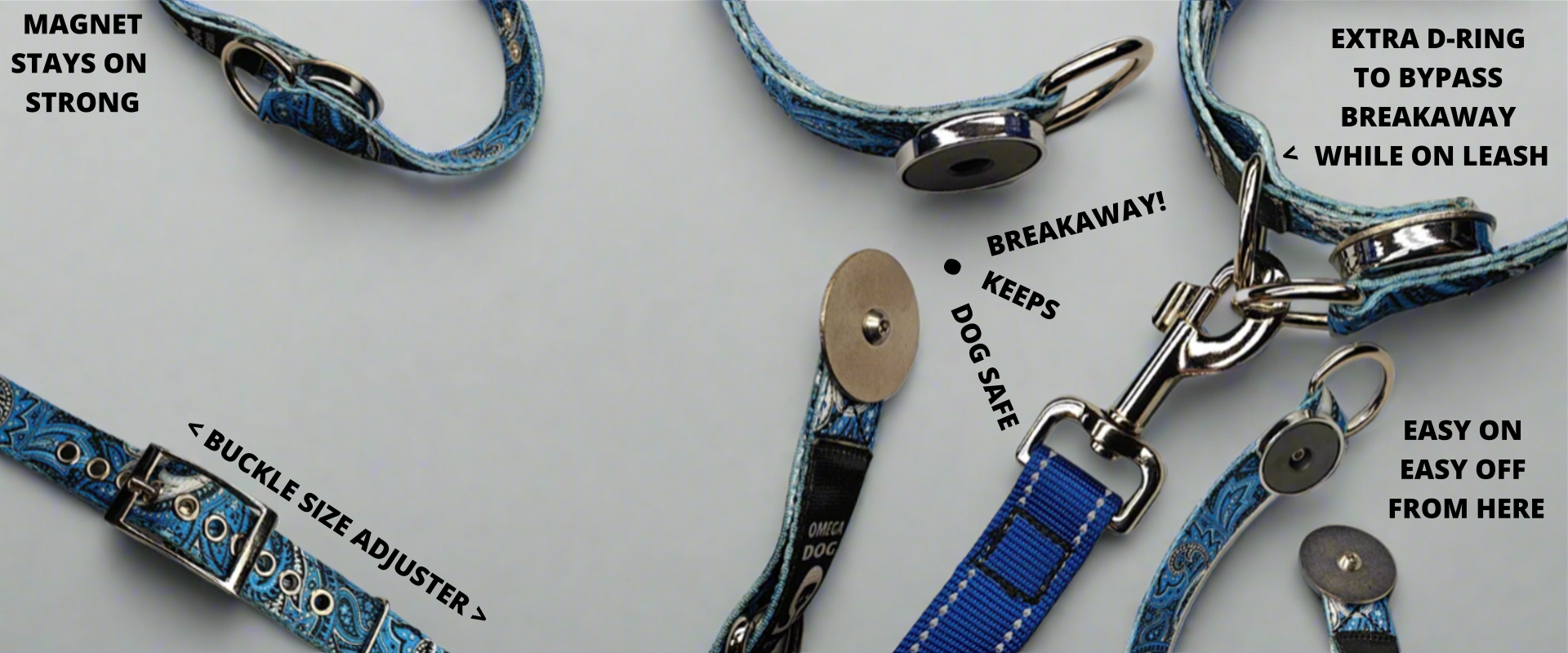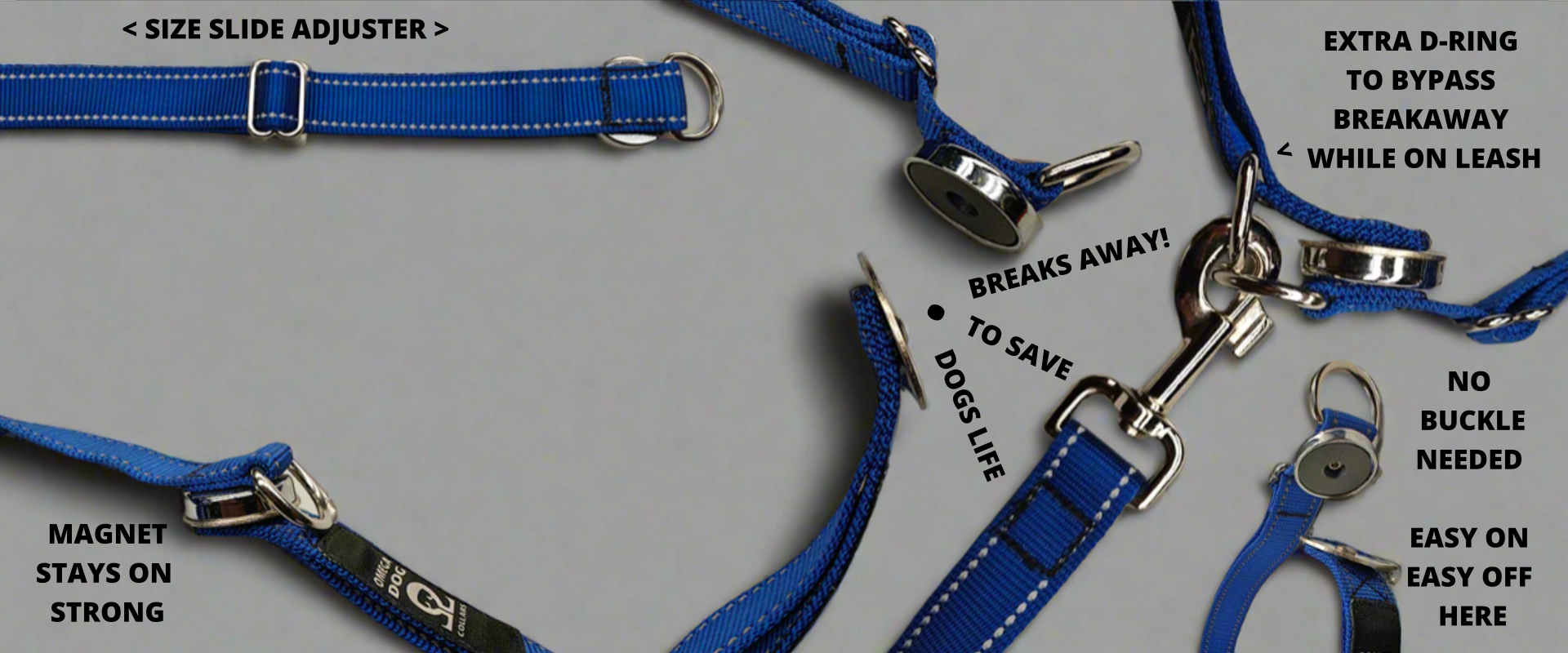 I love the quality of these collars. Over the years I have purchased several different types and these are by far my favorite. They have put a lot of time and thought in this produce. I especially love how the magnet is design for each dog based on their weight and they work perfectly. For example the other day I was reloading the dishwasher and my dogs have to investigate. My dog Echo got her collar hooked on the bottom rack as she has done many times before but the outcome was completely different. As Echo panicked and took off on a dead run, the magnet on the collar released and she made it safely away. My dish rack stayed in place (first time ever) with the collar hanging off. I was happy to see first hand how quick and easy it was for Echo to break free and safely get away. Everything ended well with no damage to Echo or the collar. I can’t tell you how impressed I am with this collar and how much I recommend it to anyone with dogs.